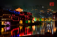 | 晚上 | 可自由欣賞美麗的【鳳凰夜景】:沿沱江兩岸漫步,欣賞沙灣吊角樓,細細品味古城久遠的歷史和 塵封心底的記憶;古香古色、極富濃郁苗家民族風韻的吊腳樓坐落于兩岸,細腳伶仃的木柱立于河中,拖起古城中一段美麗的往事。在這里您可以欣賞到鳳凰古城全貌探訪古城風情尋覓古樸醉美湘西發(fā)現(xiàn)苗家銀匠之代代相傳的銀飾制作技。 |